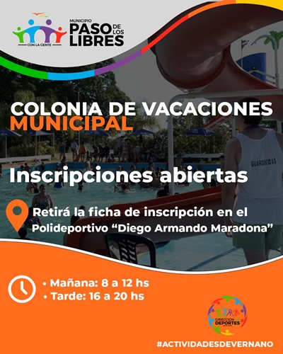 El Municipio de Paso de los Libres informa que se encuentran abiertas las inscripciones para la Colonia de Vacaciones Municipal, una propuesta destinada a niños y niñas, en el marco de las Actividades de Verano.